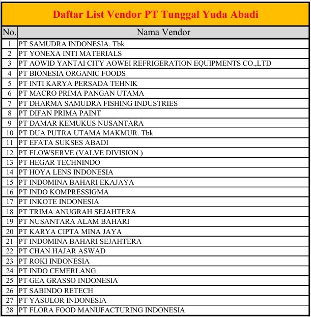 PT Tunggal Yuda Abadi adalah perusahaan kontraktor yang solid dan berpengalaman, berawal dari rekam jejak individu di industri konstruksi sejak tahun 2015. Dedikasi dan pertumbuhan yang berkelanjutan membawa kami secara resmi menjadi CV Tunggal Yuda pada tahun 2023, dan kini telah berevolusi menjadi PT Tunggal Yuda Abadi di tahun 2025. Secara teknis, kami melayani berbagai jenis pekerjaan seperti sipil, konstruksi baja, mekanikal dan elektrikal (ME), perawatan dan perbaikan mesin produksi, serta utility dan alat produksi lainnya. Selain itu, kami juga menyuplai berbagai jenis peralatan dan perlengkapan operasional yang di butuhkan setiap pelanggan untuk menunjang aktivitas operasional dan kinerjanya.